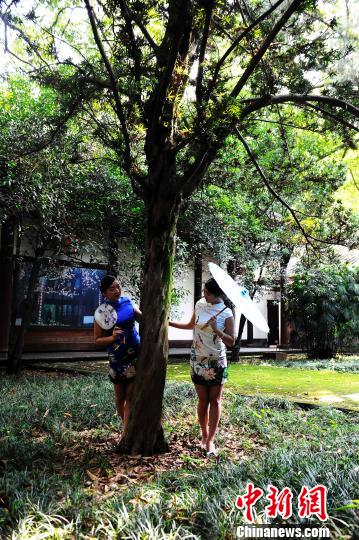 荷花展上的美女。 安源 摄