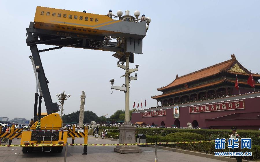 北京天安门广场及长安街华灯清洗检修完工