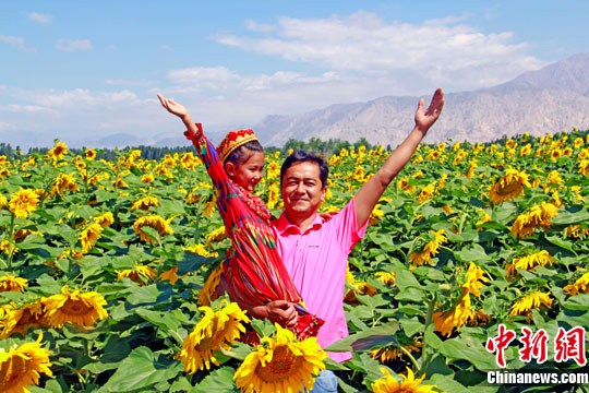 进入7月,位于天山南麓的新疆和硕县万亩向日葵竞相开放,吸引了县内外大批游客前来赏花、摄影。