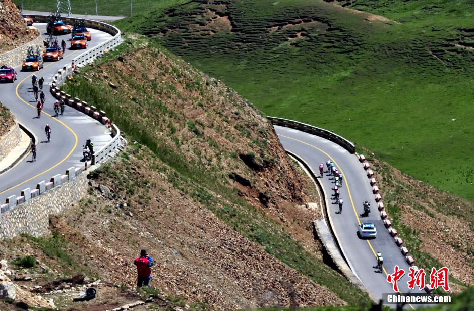 图为车手正在全力冲刺爬坡点。胡贵龙 摄