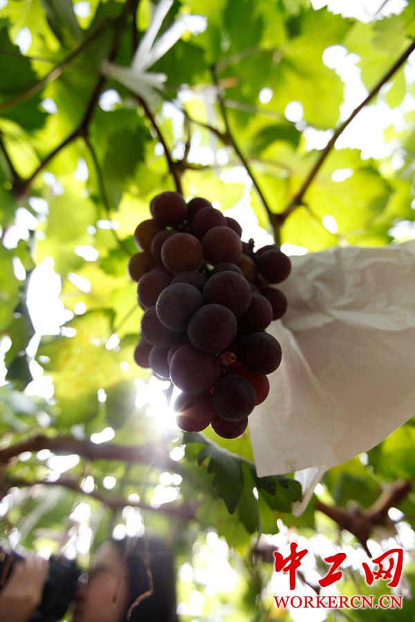 在塔城玉明生态园的特色葡萄园内,采摘葡萄的网媒记者们一手提着篮子,一手拿着剪刀,享受着果园农夫的乐趣生活。不少记者更是现场直接品味起葡萄来,来自天山网的记者林庆霞摘下园内的葡萄品味之后向记者表示,这是第一次品尝刚摘下的葡萄,“园内的葡萄绿色无污染,直接摘下吃也很放心,而且味道香脆可口,真的很不错。”中工网记者韩靖摄