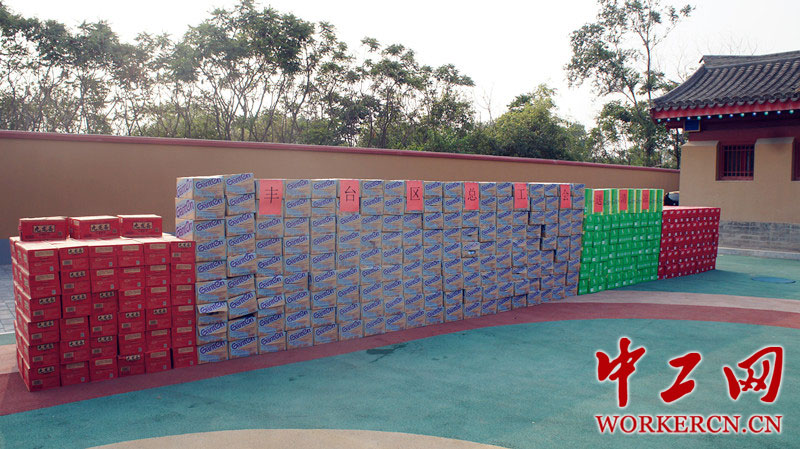 为做好高温天气防暑降温工作,有效预防和控制高温中暑及高温作业引发的各类事故,切实维护劳动者的职业安全和身心健康权益,7月10日下午,丰台区总工会常务副主席陈威、副主席刘振丽一行,来到纪念全民族抗战78周年暨“伟大胜利 历史贡献”主题展览活动指挥部慰问,送去了1000余箱矿泉水、九龙斋、冰红茶和绿茶,拉开了丰台区总工会夏季“送清凉”活动的序幕。中工网记者 葛姗 摄