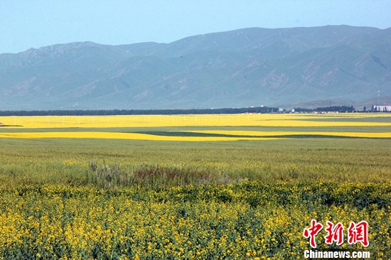 进入盛夏7月,新疆昭苏县万亩油菜步入盛花期,油菜花竞先盛开,漫山遍野的油菜犹如金色花的海洋,似一幅美丽的画卷,吸引了全国各地的游客徜徉在无边的金色油菜花海中,感受“塞外江南”独有的秀美风光。 汪铁锁 摄