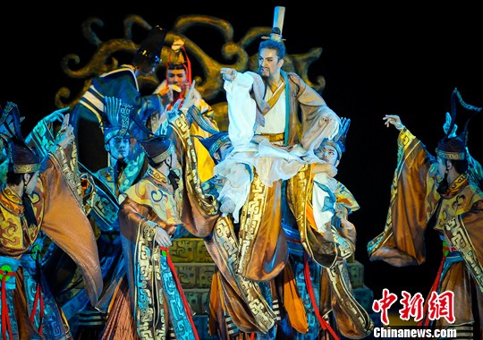 作为第四届中国新疆国际民族舞蹈节的演出剧目,由中国歌剧舞剧院创作的舞剧《孔子》在新疆人民剧场演出。刘新 摄