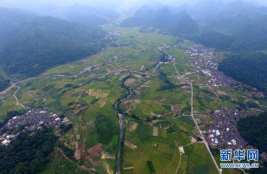 这是7月22日在广西融安县东起乡崖脚村拍摄的稻田。 新华社记者 黄孝邦摄