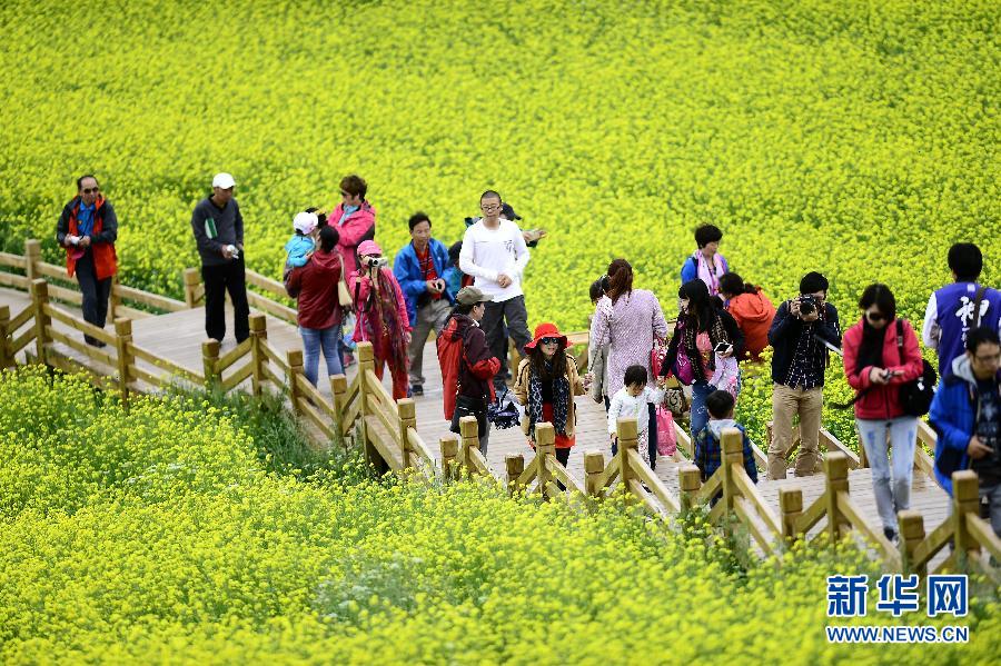 7月22日,游客在门源油菜花海内游览。近日,青海省海北藏族自治州门源回族自治县近50万亩油菜花盛开,形成“百里油菜花海”的美景。 新华社记者张宏祥摄