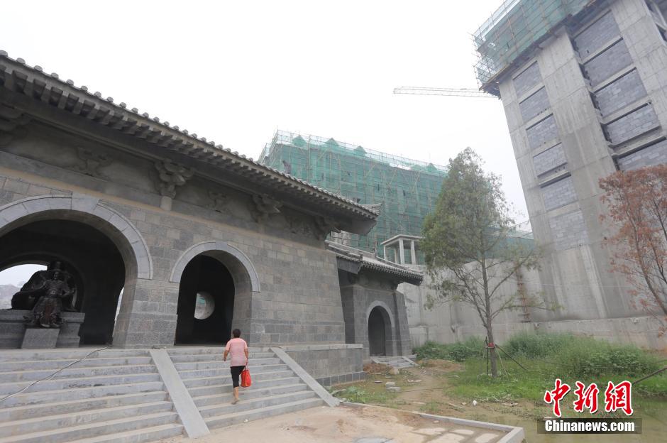 7月23日,郑州洞林寺,寺院右边大楼的基座就建在寺院里。杨正华 摄