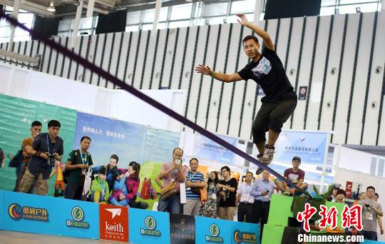 “走扁带”玩的是平衡技巧。 泱波 摄