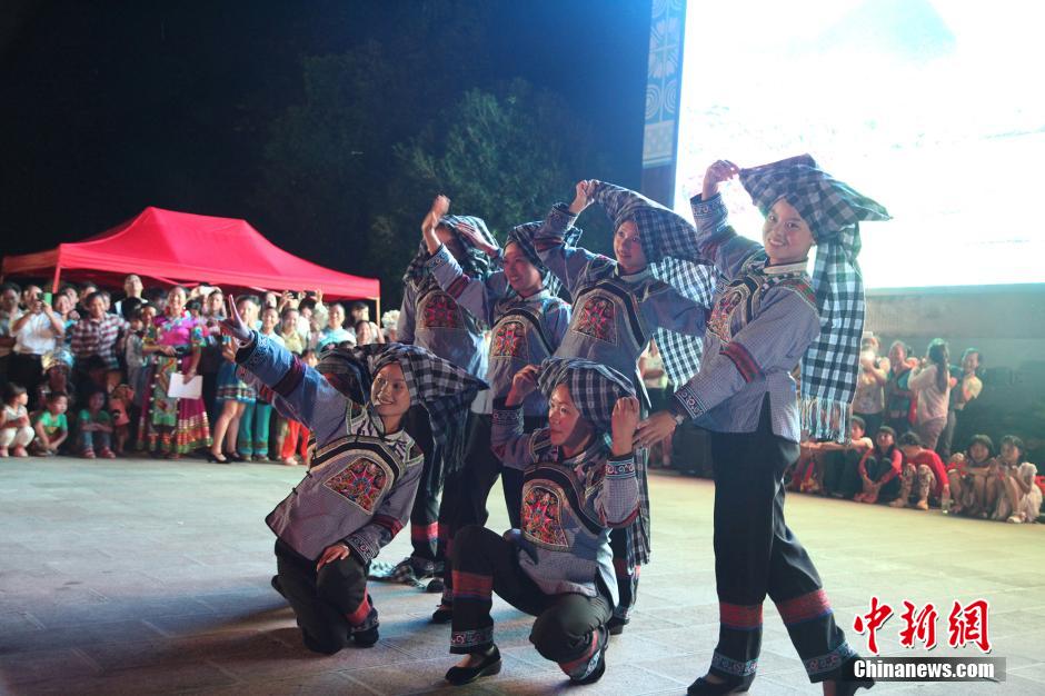 图为篝火晚会现场,多个少数民族起舞共贺布依年 。 周娴 摄