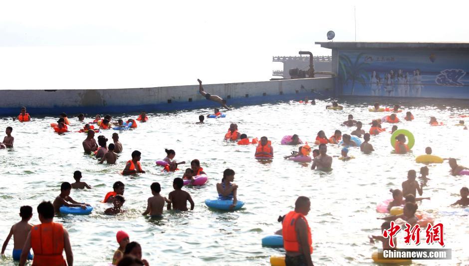 7月26日,河南郑州桑拿天高温难耐,民众在一处亲水乐园嬉戏寻觅清凉,泳池几乎被挤爆棚,犹如下饺子。 中新社发 王中举 摄