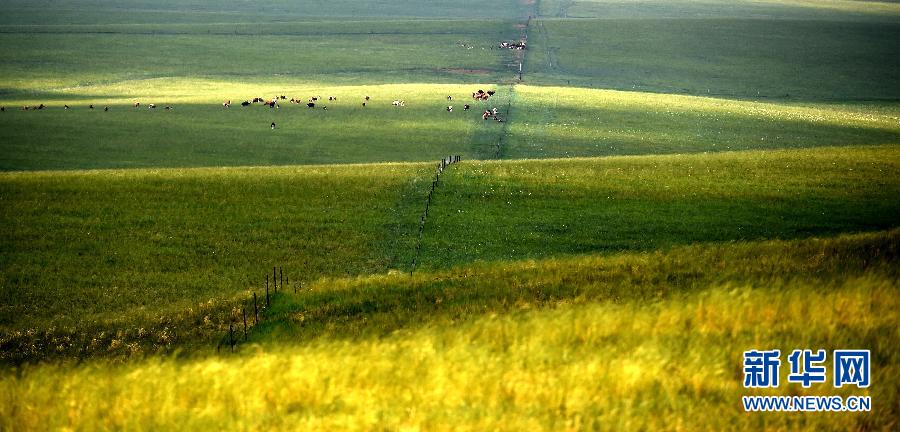 这是阿巴嘎旗罕乌拉苏木草原风光(7月21日摄)。盛夏时节,位于内蒙古中部的锡林郭勒大草原景色秀美。蜿蜒的河流、天空中的云朵、散落的蒙古包、“游动”的牛羊构成美丽的画卷,吸引众多游客前来观赏游玩。新华社记者任军川摄