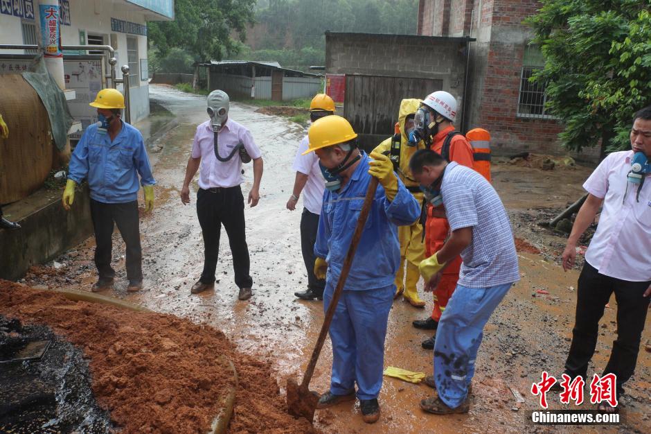 图为现场工作人员用土保护倒灌作业的水管。 于海波 摄