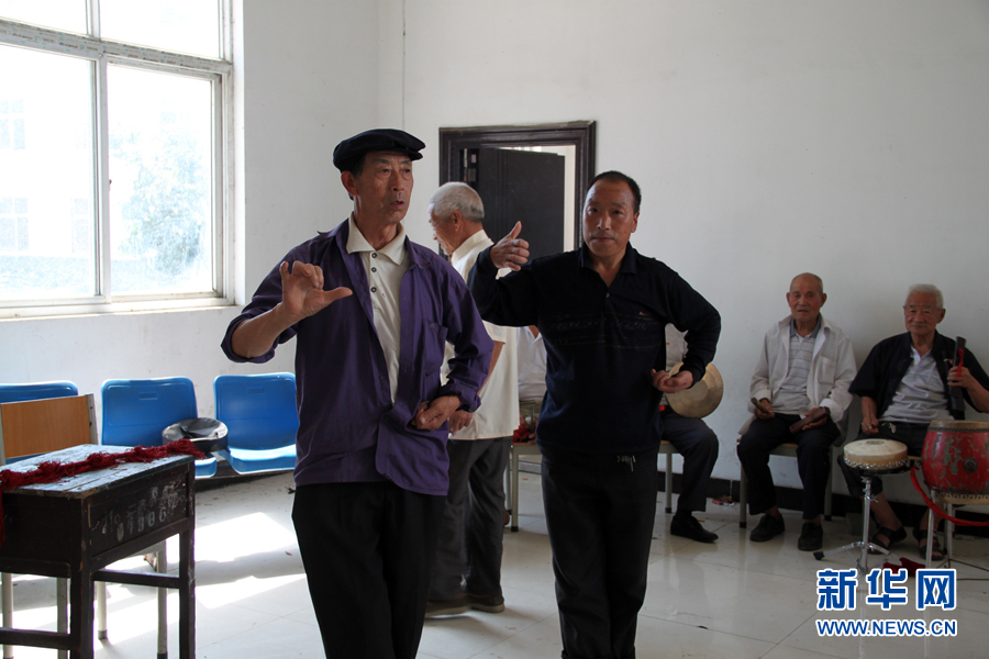 2015年7月24日,马超营靠山簧剧团在进行日常排练。(新华社发 董巍 摄 )