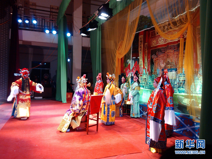 2015年春节前夕,马超营靠山簧剧团为山区群众演出。(新华社发 董巍 摄 )