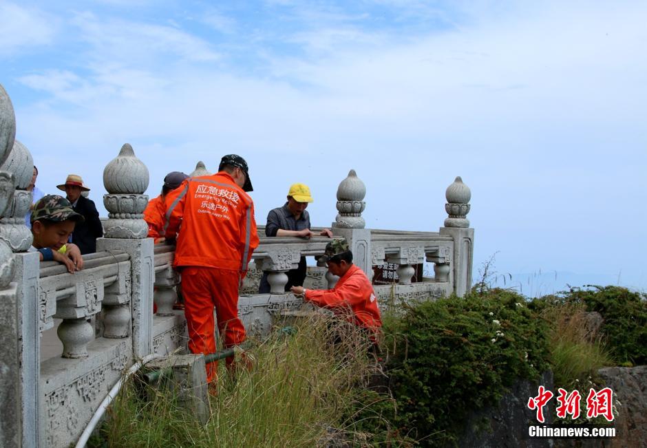 “环保蜘蛛侠”准备下到悬崖下捡拾垃圾。刘忠俊 摄