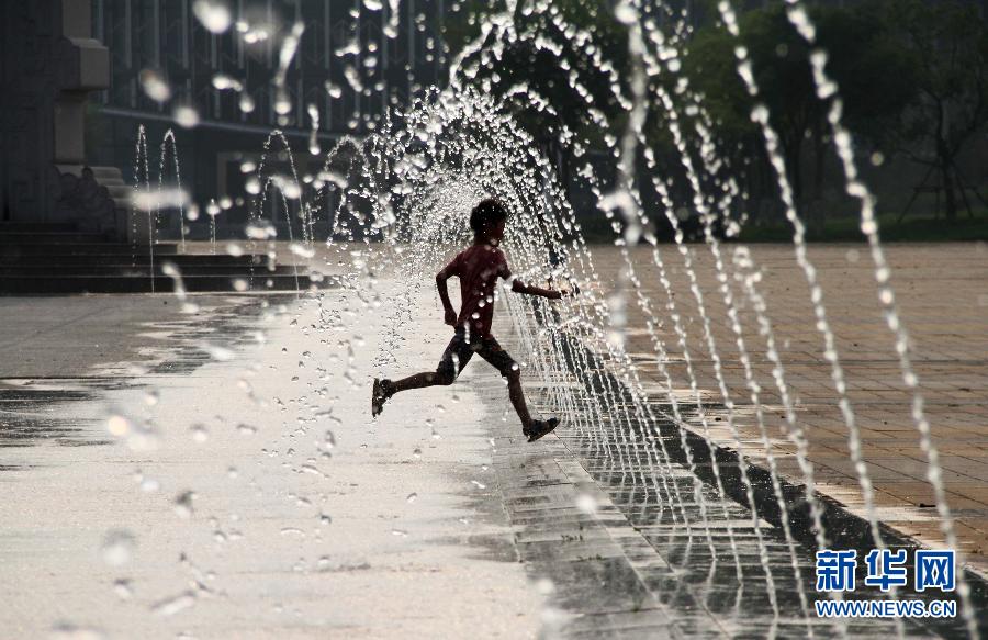 7月26日,一名小学生在山东滨州经济技术开发区明珠广场戏水。紧张而繁忙的一个学期过去了,孩子们终于迎来了“拯救不开心”的暑假,那种好似“雨后见彩虹”的心情,真爽!暑假里最郁闷的事,不是玩得不够high,而是再不赶紧玩耍,假期就要结束啦!正所谓“无快乐不暑假”,小伙伴们快快走出家门,尽情享受暑假的快乐吧。新华社发(张滨滨 摄)