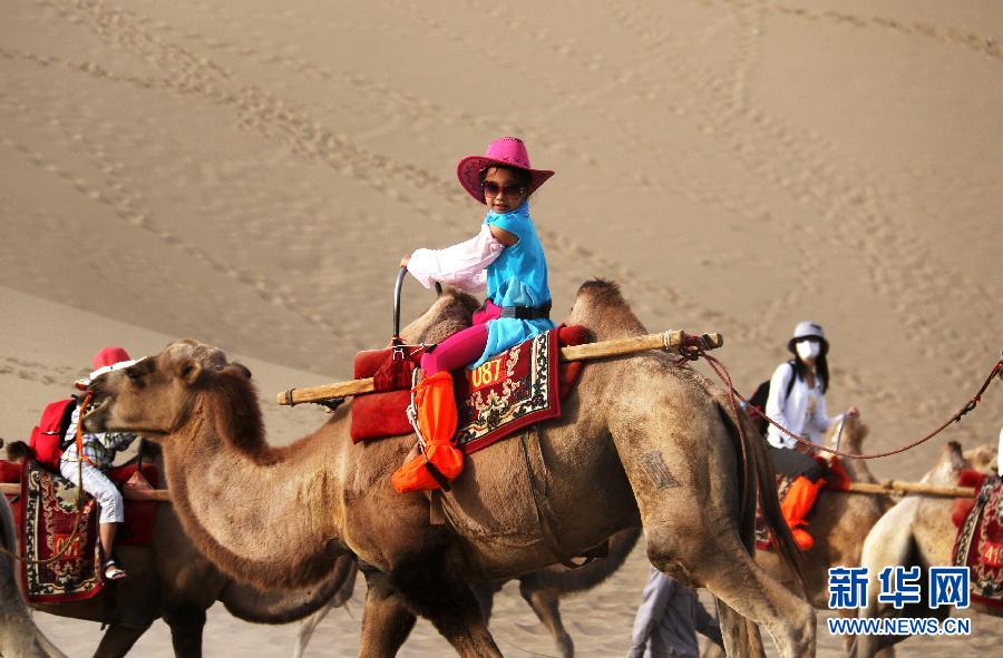 7月28日,一名小朋友在甘肃省敦煌市鸣沙山月牙泉景区体验骑骆驼。紧张而繁忙的一个学期过去了,孩子们终于迎来了“拯救不开心”的暑假,那种好似“雨后见彩虹”的心情,真爽!暑假里最郁闷的事,不是玩得不够high,而是再不赶紧玩耍,假期就要结束啦!正所谓“无快乐不暑假”,小伙伴们快快走出家门,尽情享受暑假的快乐吧。新华社发(张晓亮 摄)