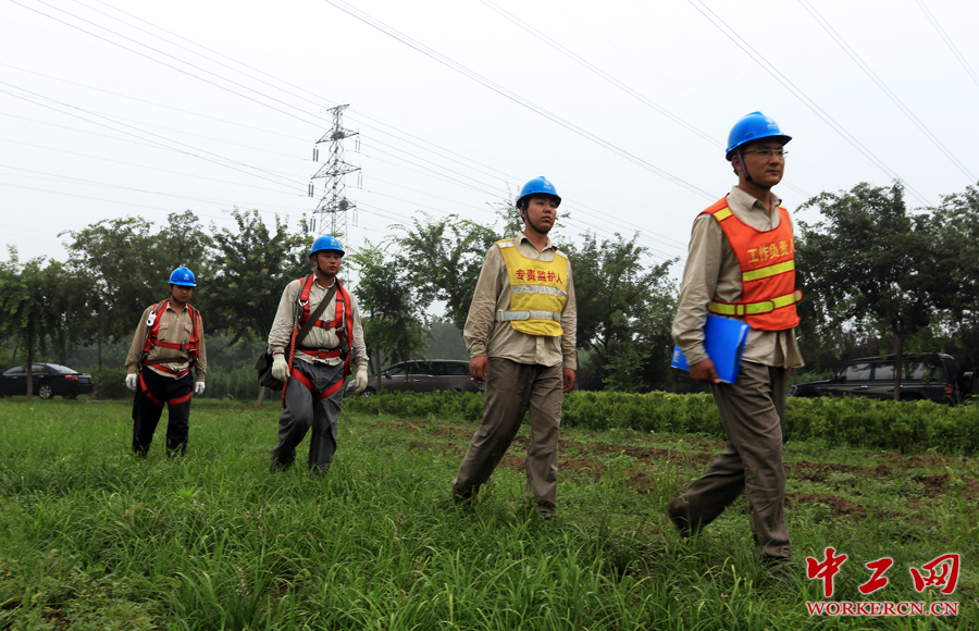国网北京检修公司顺义区昌怀输电线路工作现场,检修班正准备去检查高压线路。    (中工网记者   毛邓摄)