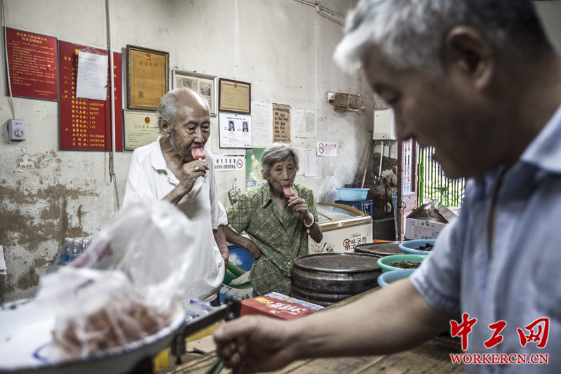 半个世纪,赵府街副食店不仅保留着北京人的老味道,也静静地聆听着这胡同里的老故事。这对老人是店里的老顾客,他们今年已经八十多岁了,老大爷喜欢唱歌,老太太喜欢遛弯,不过两人共同的爱好是一起吃冰棍儿。或许这就是他们这辈子最浪漫的事儿。中工网记者韩靖摄