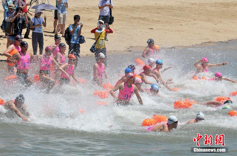 8月1日,海峡两岸200名泳士从厦门环岛路椰风寨出发,搏浪7公里,前往小金门双口村海域。 张斌 摄