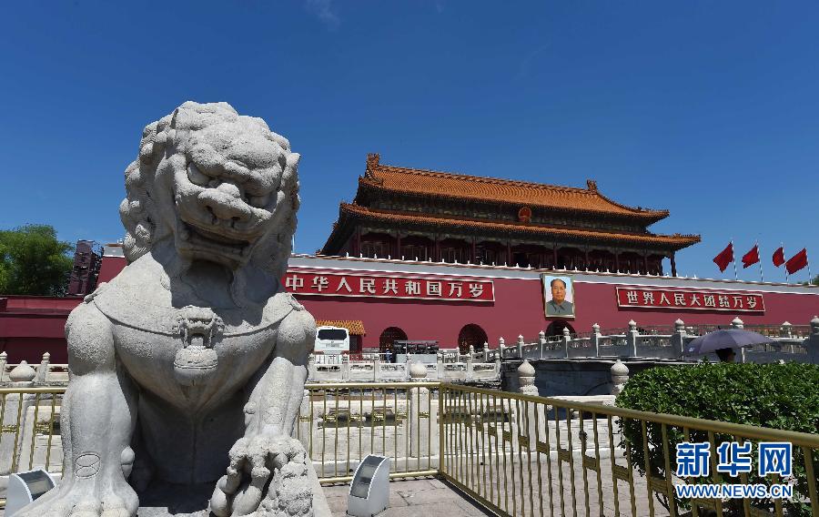 蓝天下的天安门城楼(8月4日摄)。 8月4日,北京结束连日阴雨天气,迎来晴好天气。 新华社记者 陈晔华 摄