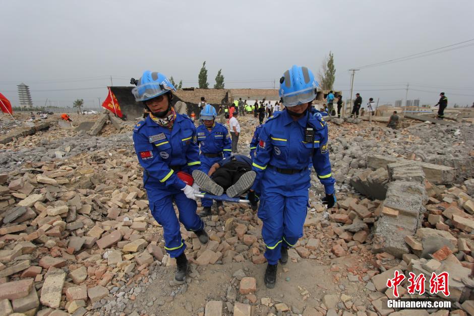 8月4日,新疆巴音郭楞蒙古自治州人民政府在库尔勒市铁克其乡举行2015地震综合应急演练。当天,由巴州公安局、武警巴州公安消防支队、库尔勒公路管理局等18支救援队及群众近300人和百余台救援车辆、设备参加了演练,并首次将无人机投入到演练之中。易清华 摄