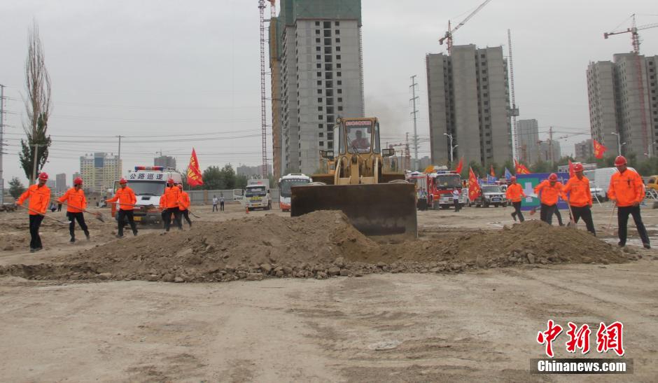 库尔勒公路管理局道路交通应急救援队快速抢通通往“地震灾区”的道路,为“救灾”顺利展开提供交通保障。易清华 摄