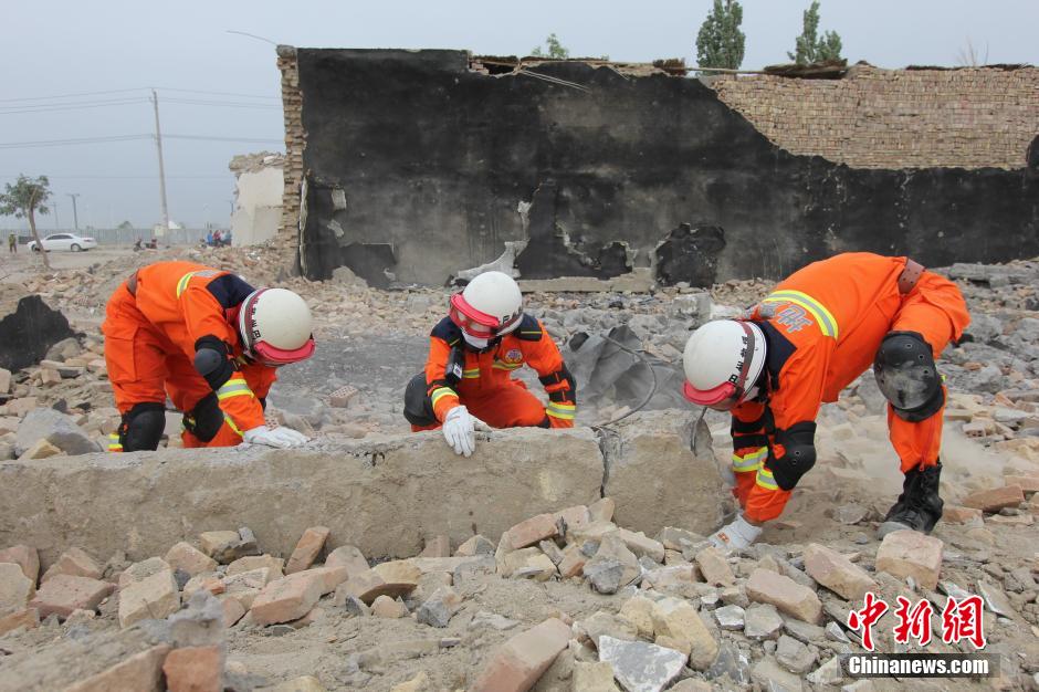 地震专员救援人员争分多秒展开搜救。易清华 摄
