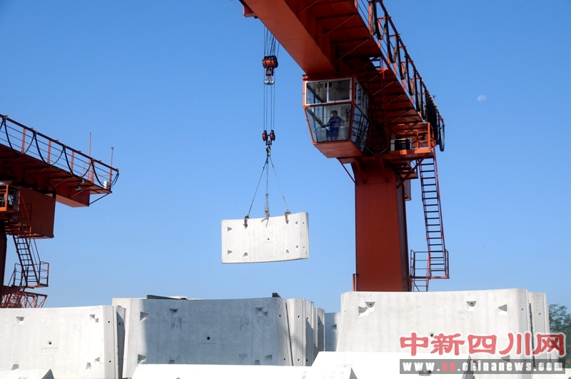 图为:管片是分量十足的大家伙,只能靠专门的吊车来吊进吊出。