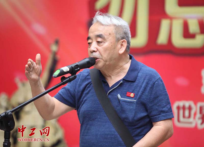 图为展品收藏人金铁华老先生在开幕仪式上讲述红色收藏的经历。中工网记者 张起晨 摄
