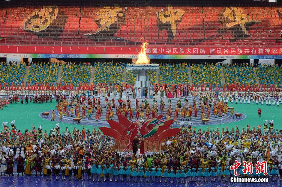 运动会开幕式现场,各民族共同欢庆。刘文华 摄