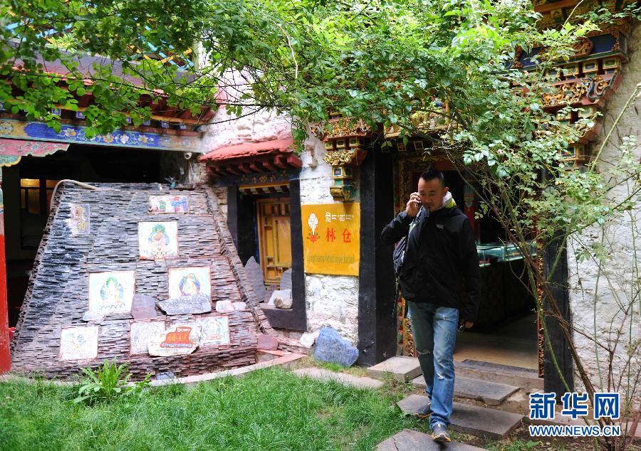 洛桑扎西在拉萨“林仓”酒店接电话(8月6日摄)。 新华社记者 晋美多吉 摄