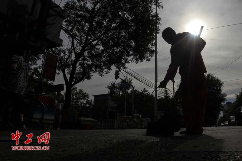 酷暑难耐的夏日,对于从事露天工作的劳动者来说,是煎熬,对于环卫工人来说,更是如此。对被誉为“城市美容师”的他们来说 ,每天都是平凡的一天;被辛劳与汗水填满的日复一日,成就了他们数载的坚守。对他们来说,平凡的街道已不仅单单只是街道, 更是寄托了情感的岗位。(中工网记者 张起晨 摄)