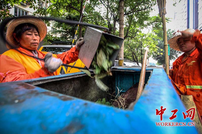 田大姐佘大姐一起工作时非常默契,经常是彼此之间的一个眼神,就能明白对方的意思,“配合着做工作,效率也更高。 ”(中工网记者 张起晨 摄)