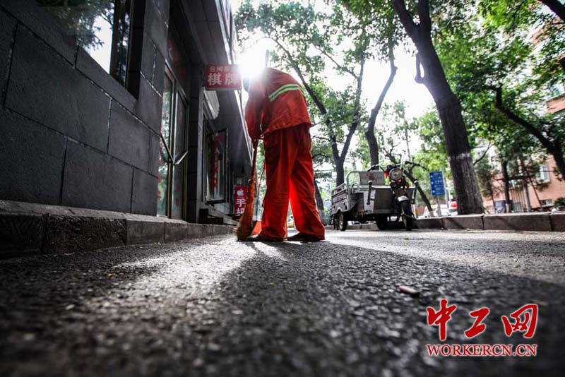 环卫工人是每个城镇不可缺少的一部分,正是他们顶着星光伴着月光的付出,换来城市的干净、整洁。他们渺小,但他们伟大,他 们用默默无闻的奉献,为“城镇美容师”这一称号增色!点赞!献给炎炎烈日下最可爱的人。(中工网记者 张起晨 摄)