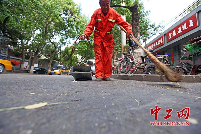 他们虽然工作枯燥而辛苦,但他们却丝毫没有抱怨,“虽然累点,苦点、但是能把这个城市打扫的整洁干净,自己看着也舒 服,大家待着也舒服不是”——这就是可敬的环卫工人。(中工网记者 张起晨 摄)