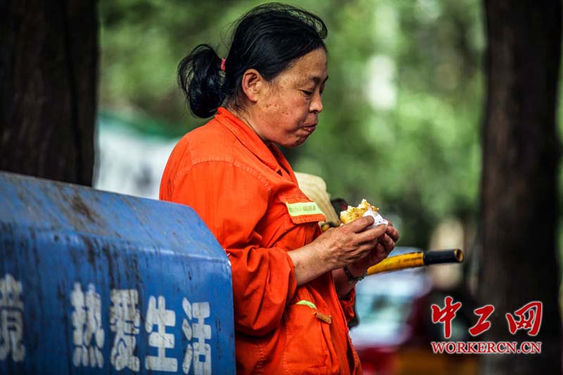 田大姐说“有些时候,也顾不上好好吃饭,就买两个烧饼,在路边凑合吃一口得了”。(中工网记者 张起晨 摄)