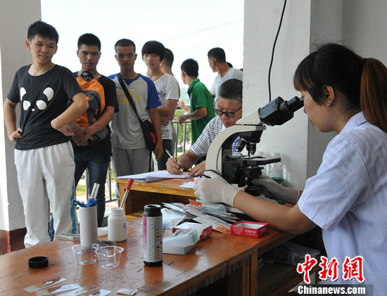 8月11日,广西三江侗族自治县,350多名报名参军的适龄青年接受征兵体检。据国防部征兵办此前发布消息称,今年少数民族居住集中地区将多征集懂双语言、文化程度较高、有专业特长,特别是部队建设需要的优秀少数民族青年入伍。