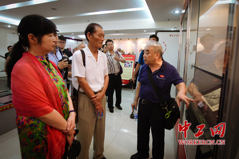 今年是反法西斯战争胜利70周年,金铁华也为纪念这一历史性时刻,在北京市东城区东花市街道举办主题为“勿忘国耻 圆梦中华”的红色收藏展览,展览共展出150余件展品,东花市街道的居民可免费参观。图为金铁华为前来参加展览的嘉宾进行详细讲解。(中工网记者 张起晨 摄)