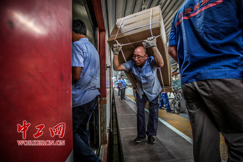 正常作业的情况下,按规定,每名装卸工1分钟要装卸15件行李,但每车货物数量都不一样,实际远不止这个数。(中工网记者 张起晨 摄)