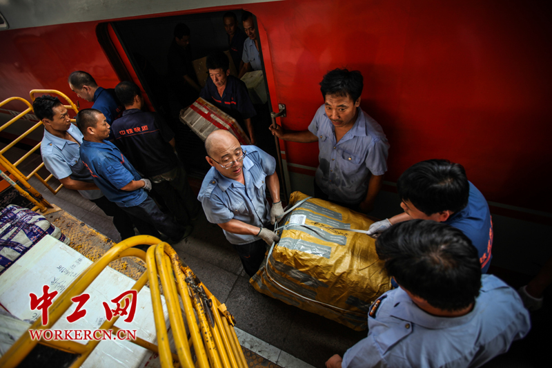 王春城装车组共有9名组员,平均每天要完成20趟行李车的装卸作业,装卸行包1.2万件左右。在组长王春城的带领下,小组成员严格执行作业标准,无论装卸货物再多,装车时间再紧,也从来都是把作业安全,文明装卸放在第一位,轻拿轻放每一件货物。(中工网记者 张起晨 摄)