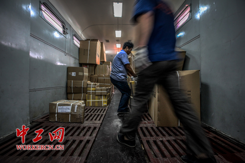 图为“装卸超人”在迅速的装卸货物。(中工网记者 张起晨 摄)