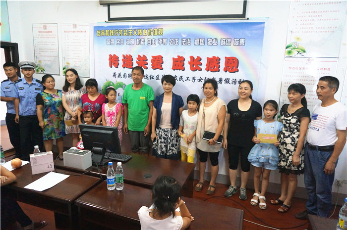 针对部分农民工家庭经济困难的现实情况,恒达社区特意挑选出来五个特困农民工家庭,并现场为这些农民工子女发放了助学金。“成长的过程中有有苦也有甜,有辛酸也有快乐,有关爱也有感恩,你们的困难只是暂时的,希望你们自强不息,不放弃希望,社区也会积极帮助你们!相信你们会走出困境,生活会更美好!”社区工作人员在将助学金交到农民工子女手中时真诚地鼓励道。