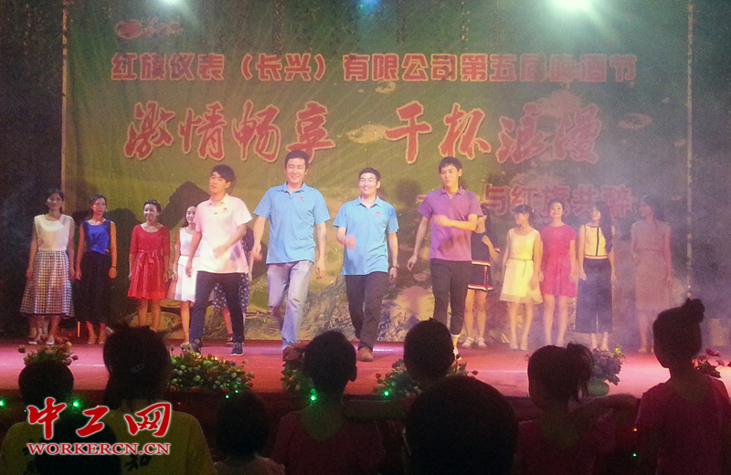图为公司行政人员(家属)共同参与职工的舞台走秀、喝啤酒大PK、歌曲、舞蹈、小品等等活动。