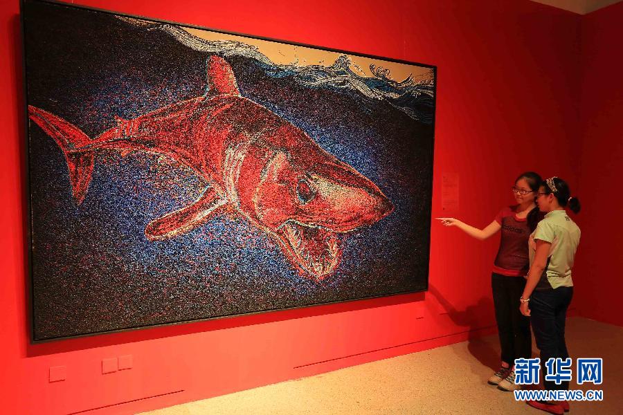 8月20日,观众在参观艺术家那危布面油画作品《被挤压者-鲨鱼》。当日,由中国国家博物馆,侨福集团旗下的艺术机构侨福艺动和国际非营利组织野生救援协会联合举办的“保护鲨鱼——艺术巡回展”在国家博物馆开幕。本次展览将呈现来自中国、摩纳哥、美国和西班牙等国的36位当代艺术家的39件作品。新华社发(张燕辉 摄)