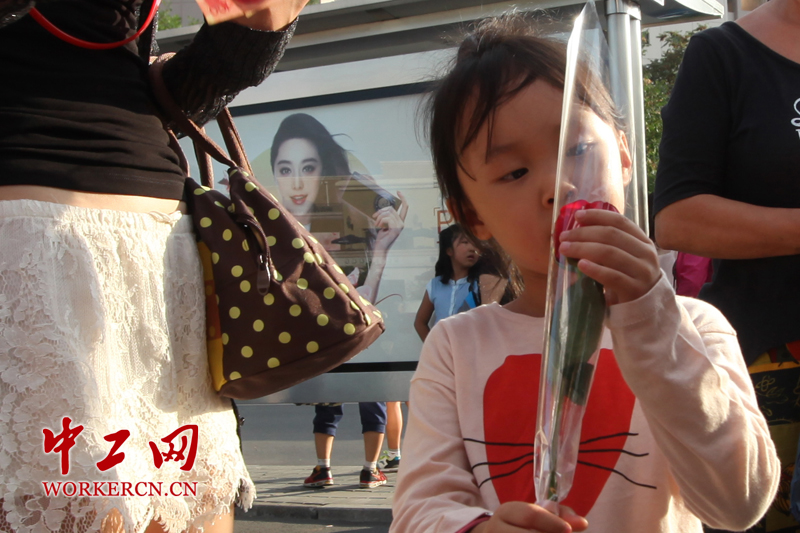 一位先生领着自己的女朋友从此经过时,在志愿者的手中买了一支红玫瑰,他说:“现在的小孩子都非常有爱心,也非常有想法。买了这支花既让女朋友开心,又做了公益事业,这是一件非常好的事情。”