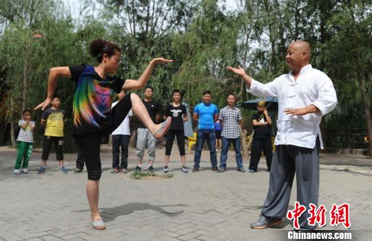 妻子赵喜平自从结婚后受他影响也开始习武,现在也和他一起向外传授传统武术技艺。 杨艳敏 摄