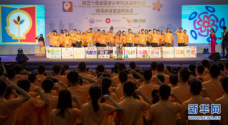 8月20日,由中国科学技术协会和香港特区政府共同主办的第30届全国青少年科技创新大赛在香港拉开帷幕。图为大赛选手宣誓。新华网 翟子赫 摄