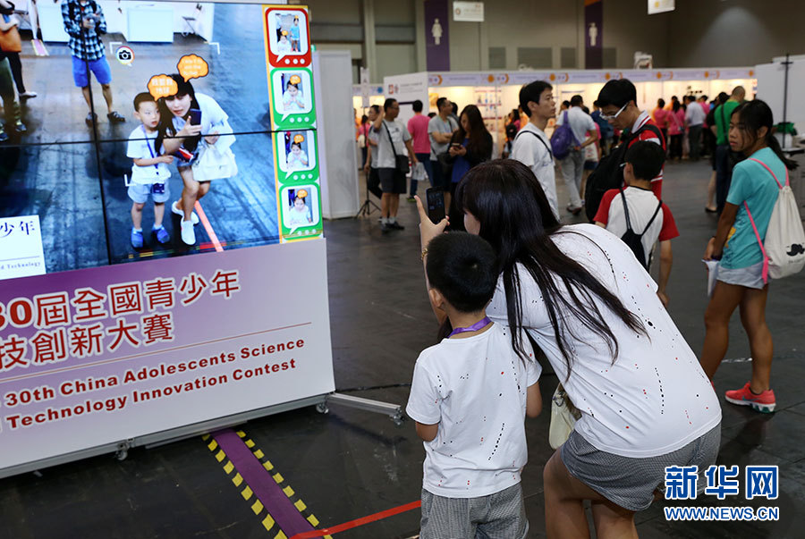 8月20日,由中国科学技术协会和香港特区政府共同主办的第30届全国青少年科技创新大赛在香港拉开帷幕。图为观众在现场体验科技创新作品。新华网 翟子赫 摄