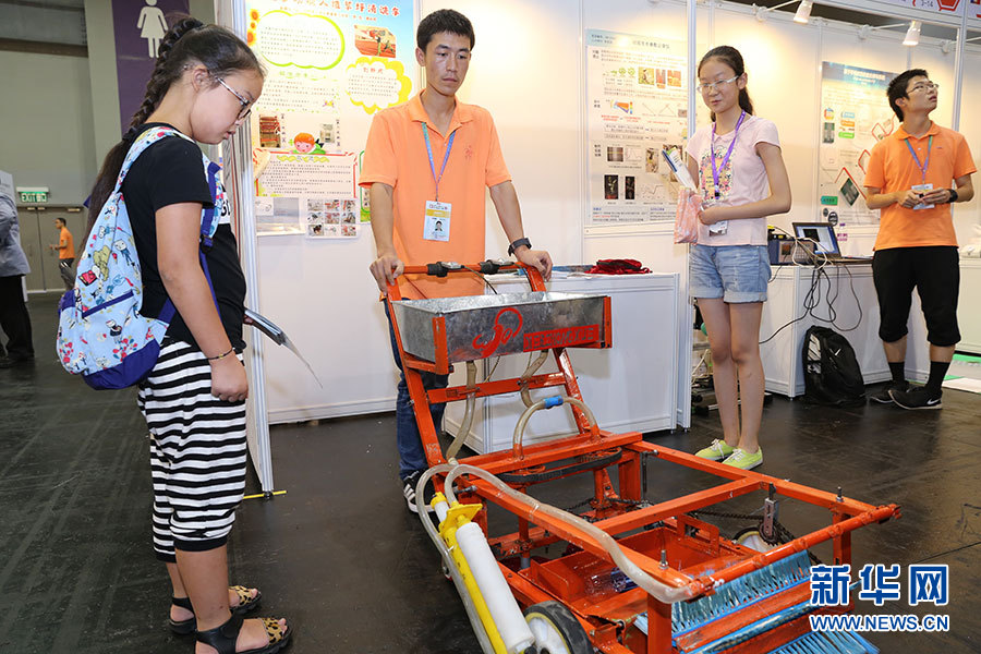 8月20日,由中国科学技术协会和香港特区政府共同主办的第30届全国青少年科技创新大赛在香港拉开帷幕。图为大赛选手向观众演示科技创新成果。新华网 翟子赫 摄